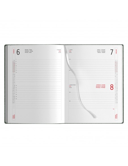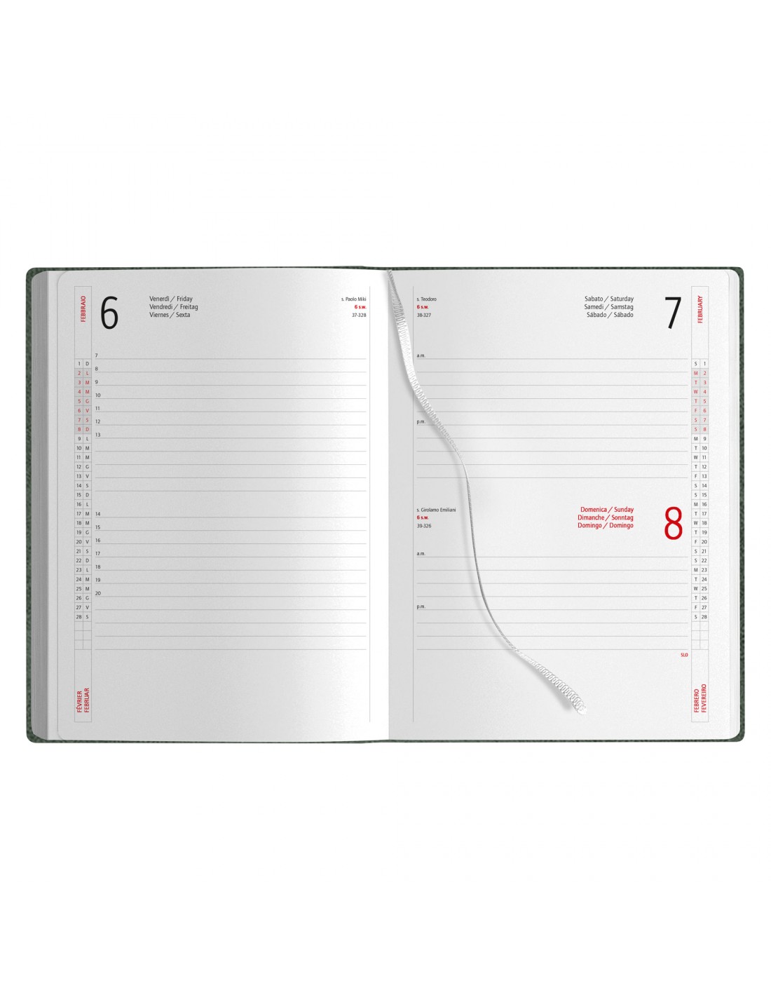 Agenda giornaliera 324 pagine S/D/A, carta bianca con stampa a 2 colori, edizione multilingue: IT - EN - FR - DE - ES - PT