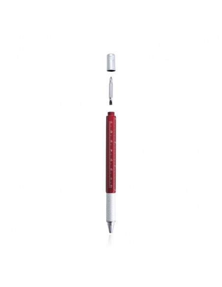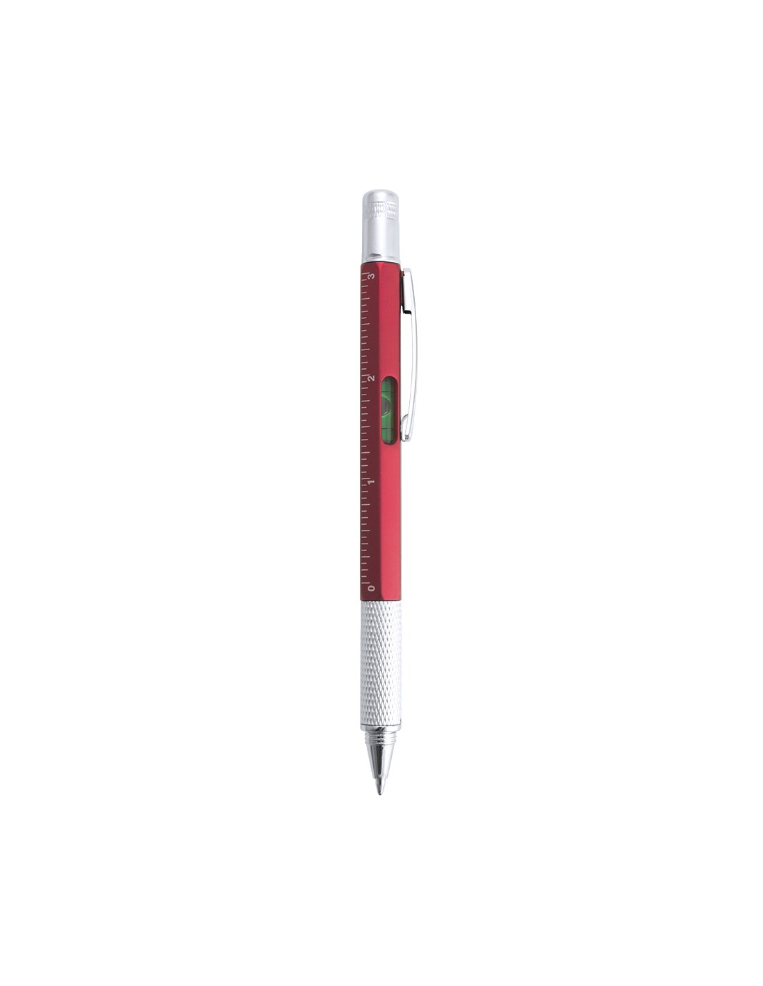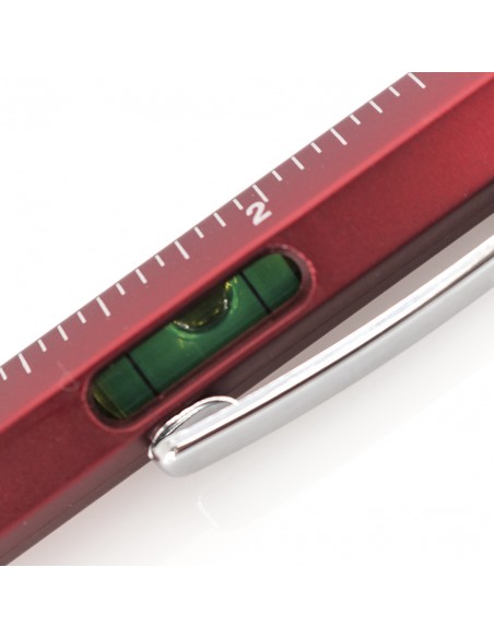Penna multiutensile 4 in 1 con meccanismo a rotazione, con impugnatura morbida. Con livella integrata, righello metrico in centimetri/pollici e cacciavite a doppia testa, piatta e a croce. Con clip in metallo e inchiostro blu.
