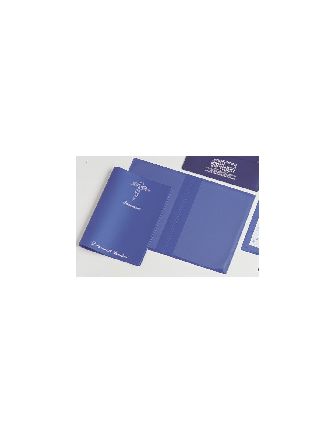 Portadocumenti a 2 ante personalizzato, realizzato in finta pelle con 2 tasche interne trasparenti.