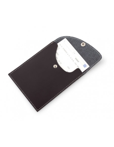 Portadocumenti da moto personalizzato. Realizzato in gommato cucito, con patta obliqua, bottone di chiusura nichelato e cuciture bianche.
