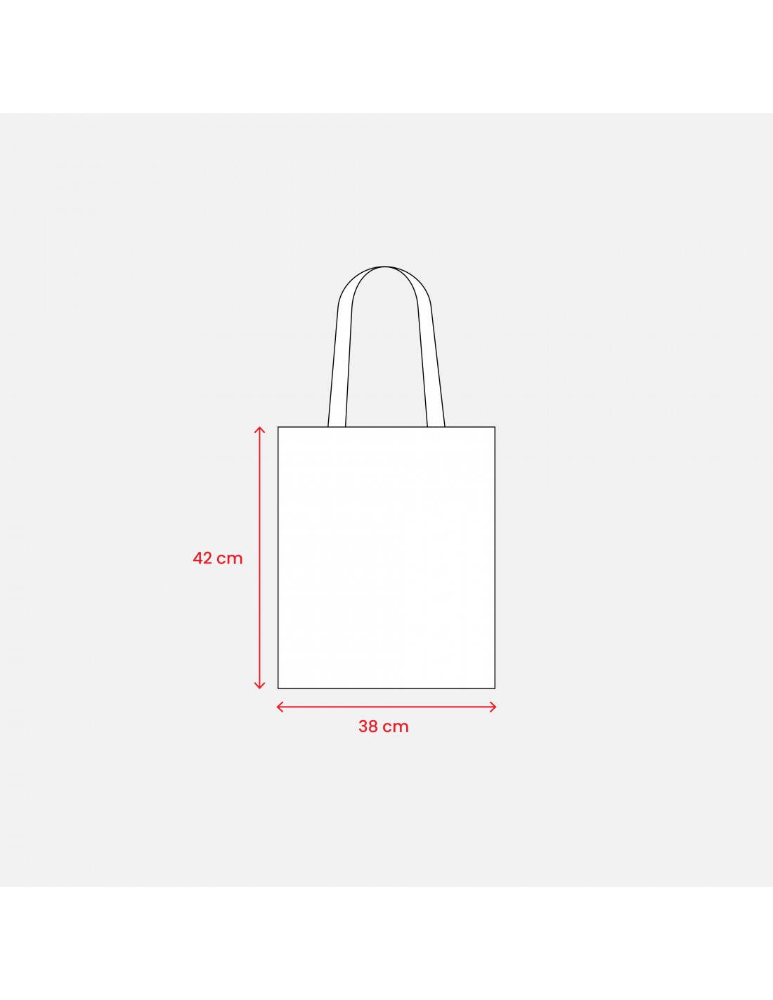 Borsa shopper personalizzata a tinta unita realizzata in cotone riciclato da 140 g/m2. Dotata di manici lunghi per un trasporto pratico a mano e a spalla. Colore naturale. È certificata GRS.