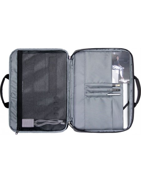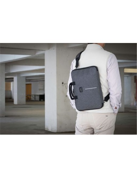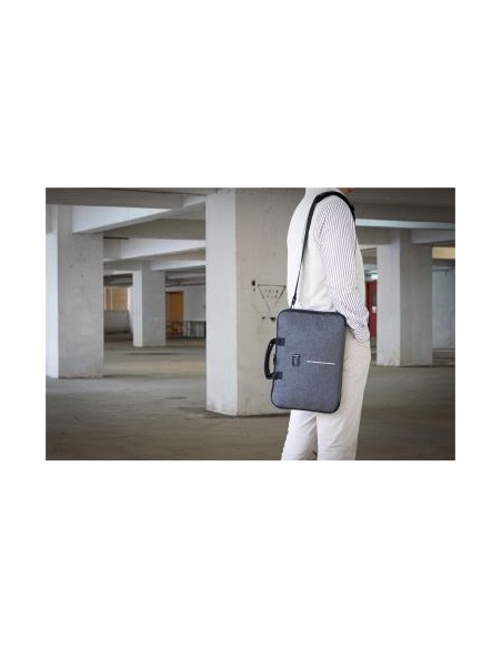 La borsa per laptop Specter 2 personalizzata è multifunzionale e si trasforma in tre modalità: a mano, a spalla e a tracolla. Realizzata con bottiglie in PET riciclato, è dotata di uno spazioso scomparto principale e di una custodia imbottita che può contenere un laptop da 16'', oltre a numerose tasche per tablet, telefono, caricabatterie, cavi e altro. Il tessuto Touring, resistente ed idrorepellente/antimacchia, protegge i propri effetti personali da graffi, versamenti e urti, rendendo la borsa ideale per viaggi e lavoro.