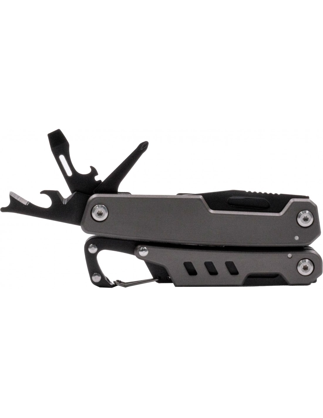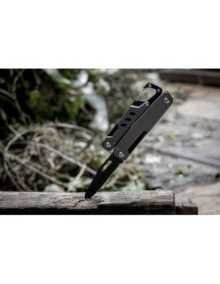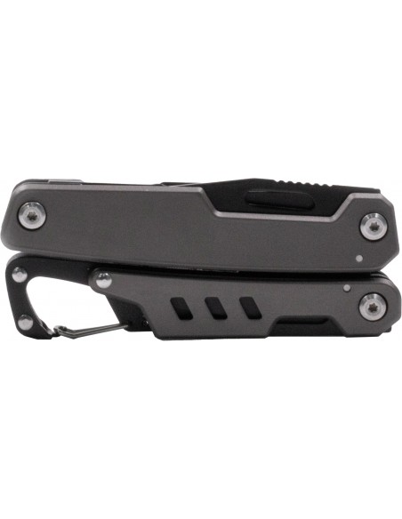 Ranger è un versatile multi-tool personalizzato. Racchiude oltre 11 utensili in un design compatto e durevole. Realizzato in acciaio inox martensitico temprato e resistente alla corrosione. Include elementi essenziali come apriscatole, cacciaviti, tronchesi, coltello combinato in acciaio 3CR13, pinze, sega e lima per legno/metallo, chiave per raggi della bicicletta, piegafili e righelli metrici e in pollici. Fornito in una scatola nera e custodia con passante per la cintura, utile al trasporto.