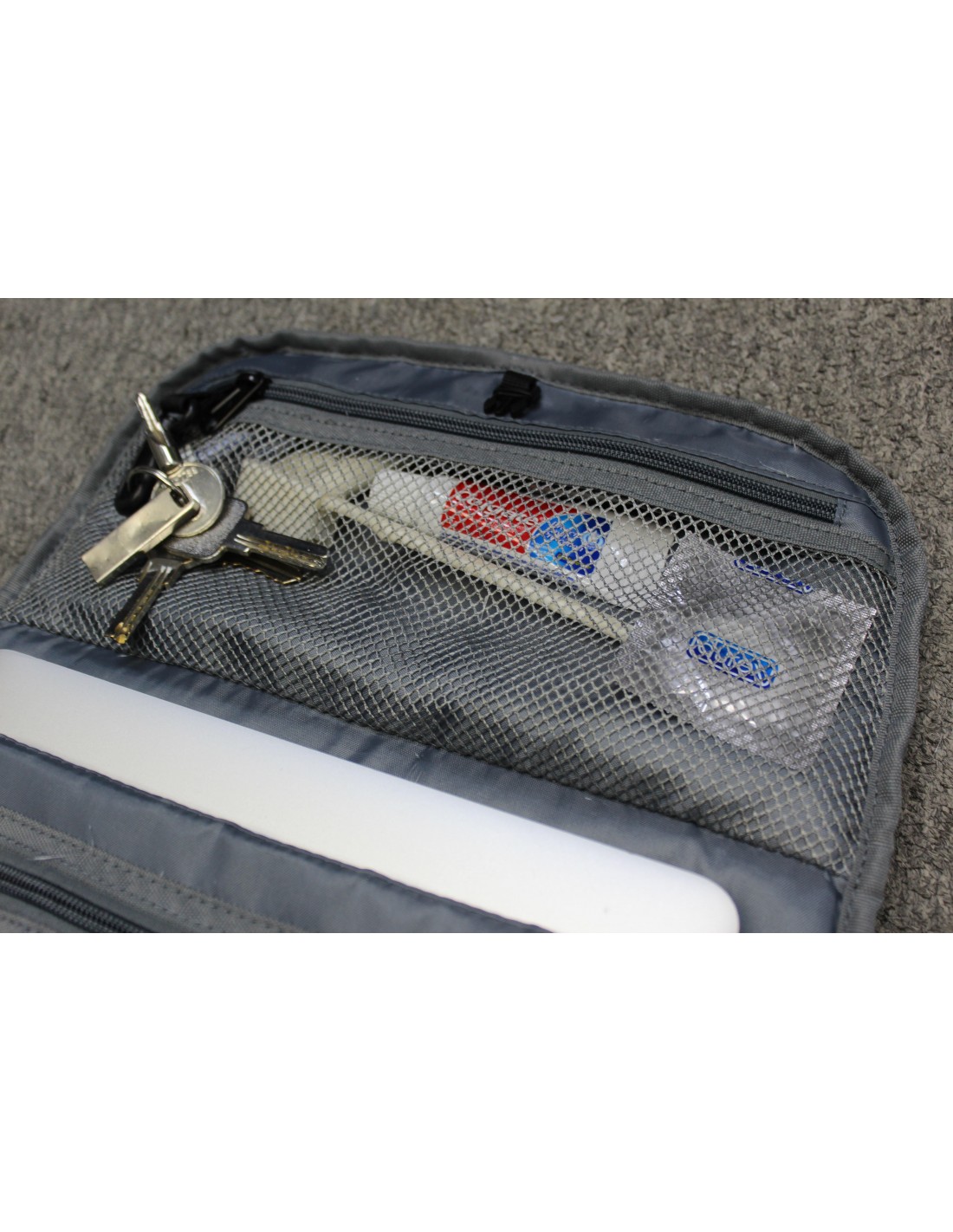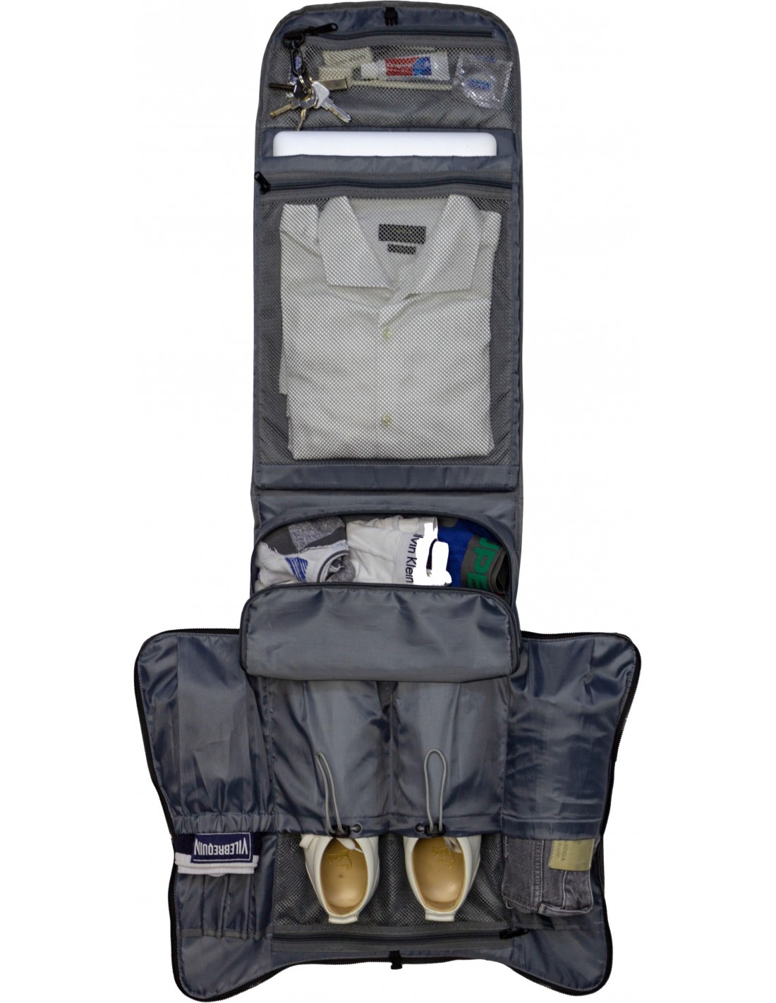 Lo zaino Marco Polo personalizzato è due in uno, trasformandosi facilmente da zaino a organizer per indumenti. Realizzato in tessuto Touring resistente ed impermeabile, è abbastanza spazioso da contenere un completo, scarpe e altri oggetti personali, perfetto per gite del fine settimana o viaggi di lavoro. Dotato di vani nascosti per la massima praticità, lo zaino include scomparti imbottiti per laptop da 15,6", passante integrato adatto per il trolley sul retro, tasca antifurto e dettagli riflettenti.