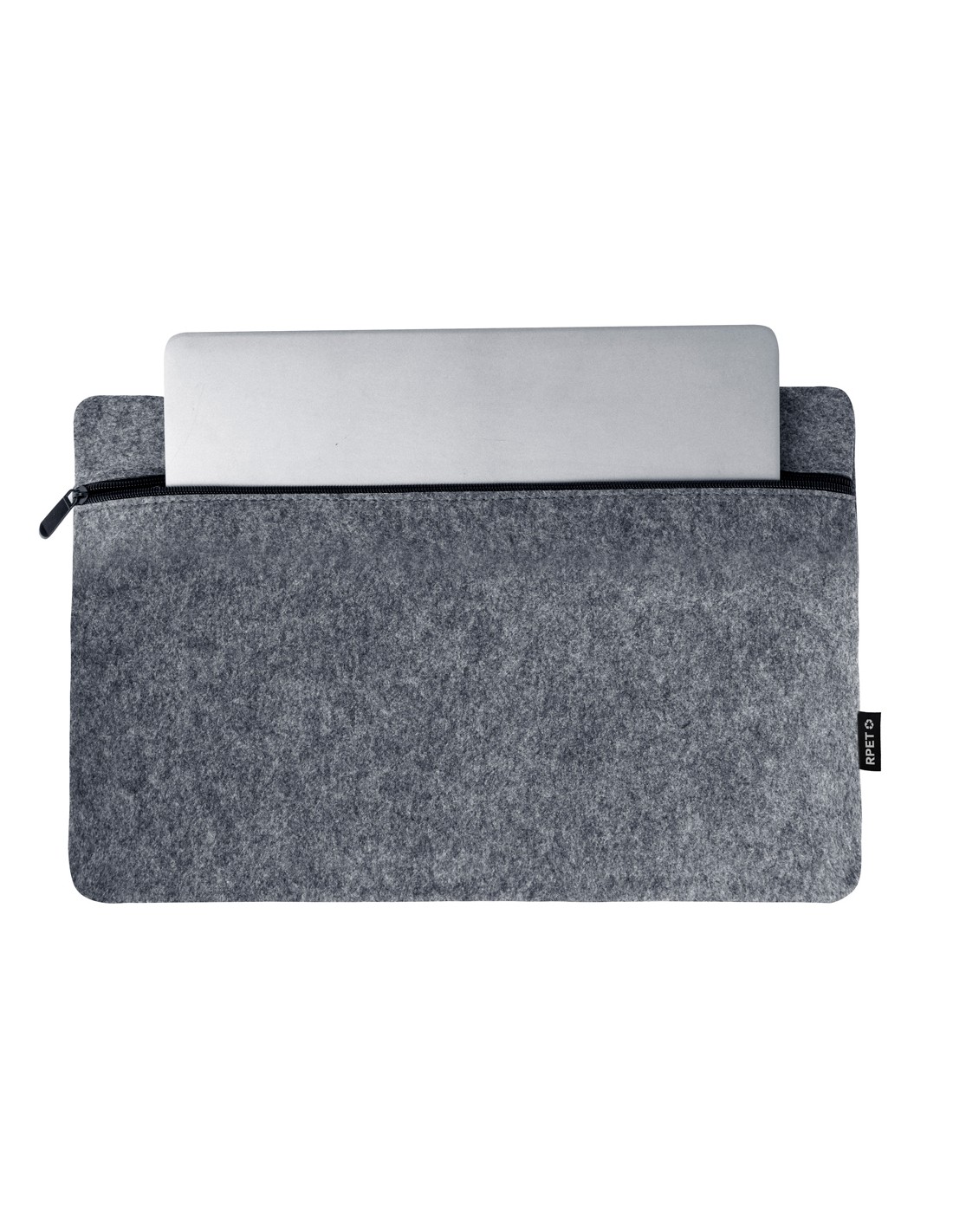 Portadocumenti personalizzato, realizzato in resistente feltro RPET effetto melange. Scomparto principale con cerniera per laptop fino a 15" e piccola tasca interna. Con robusti manici neri. Logo RPET sull'etichetta esterna.