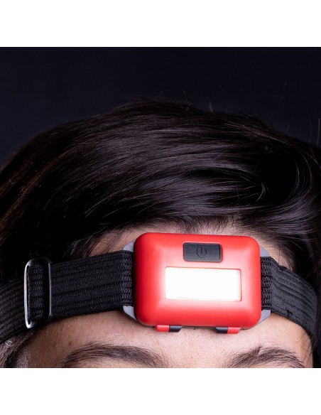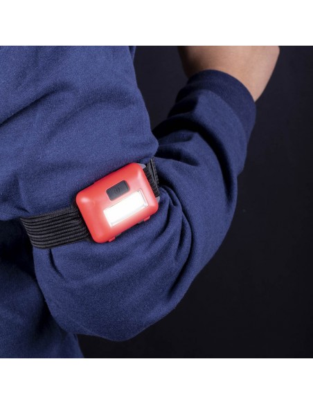 Torcia personalizzata con cinghia elastica regolabile per braccio e testa. Con 8 luci COB bianche e 3 modalità di illuminazione (2 fisse e 1 lampeggiante). Alimentata a batteria (3xAAA non incluse) e presentata in una scatola singola.
