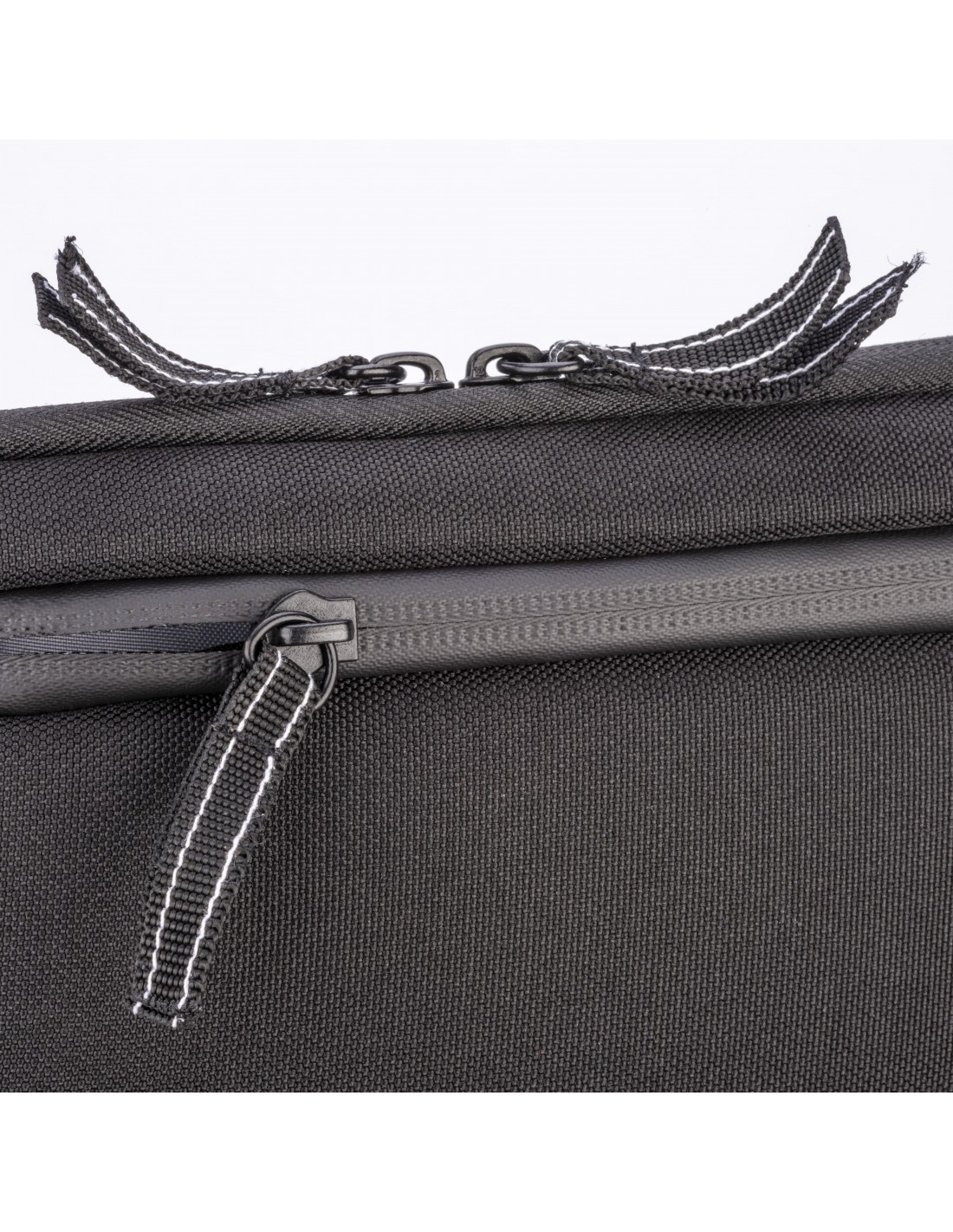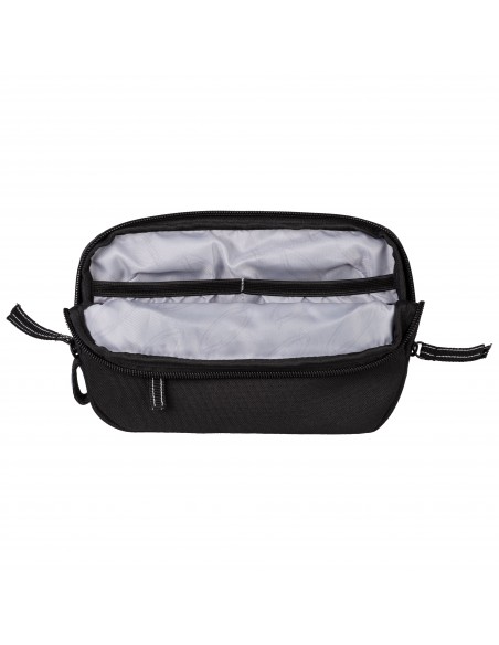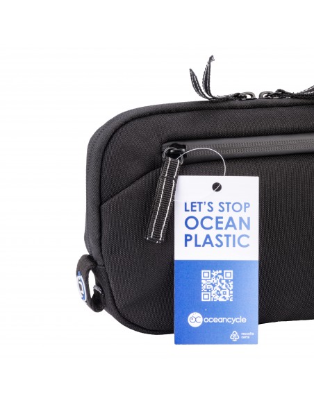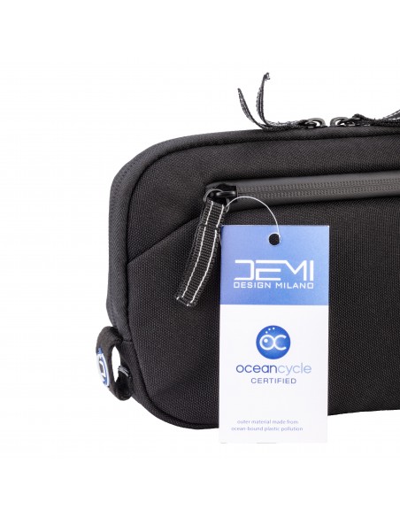Beauty case Demi in RPET Oceancycle (materiale realizzato con plastica riciclata raccolta nelle zone costiere a rischio) personalizzato. Dotato di tasca frontale con cerniera waterproof e tasca interna.