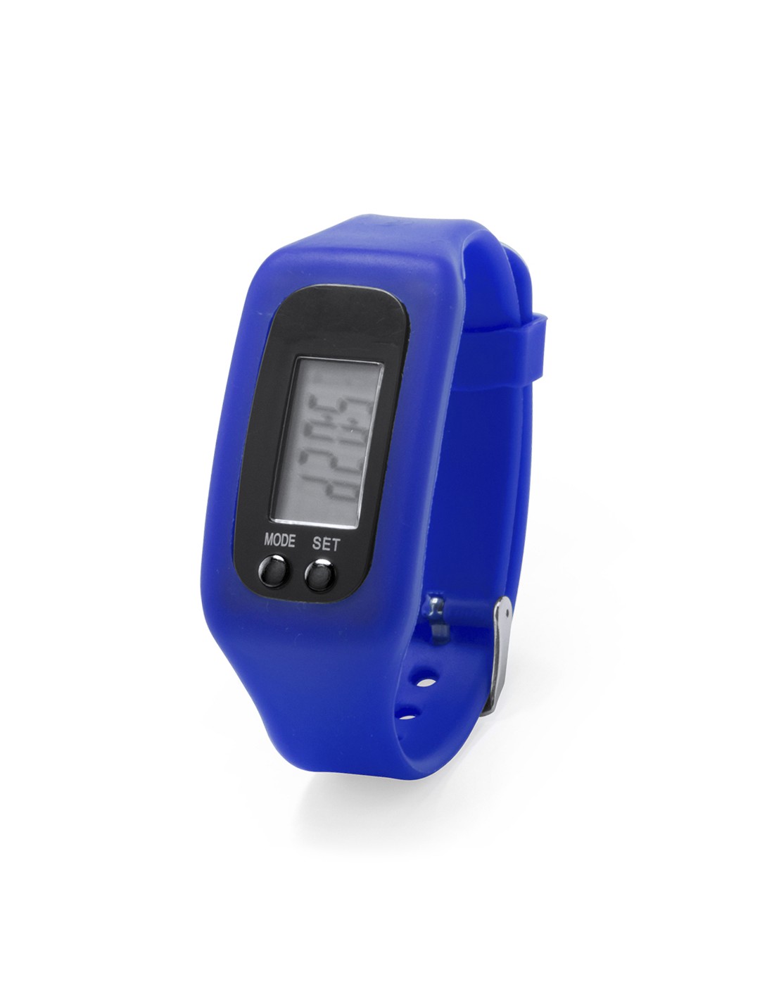 Orologio digitale sportivo personalizzato, con display LCD rettangolare, cinturino in silicone regolabile e resistente agli schizzi d'acqua. Adatto a tutti i tipi di sport e attività giornaliere. Include contatore di calorie, contapassi e cronometro. Con batteria a bottone inclusa e presentato in una scatola singola.