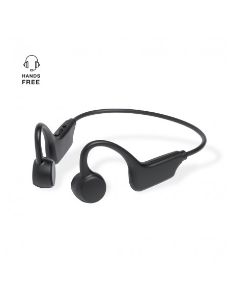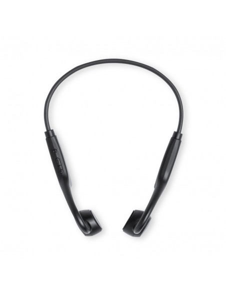 Cuffie sovraurali Bluetooth® personalizzate. Con la tecnologia a conduzione ossea, che genera una vibrazione captata dalle ossa dell'orecchio interno. Grazie a questa tecnologia, l'orecchio e i timpani dell'utente rimangono liberi, percependo sia il contenuto riprodotto attraverso le cuffie sia il resto dei suoni ambientali circostanti.