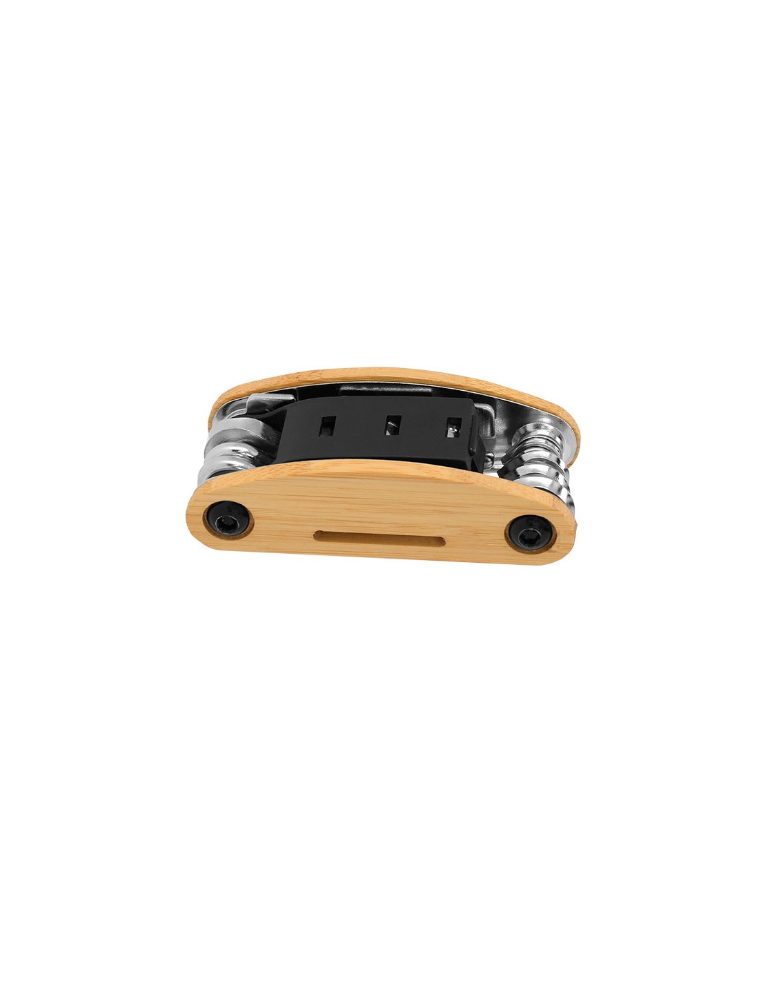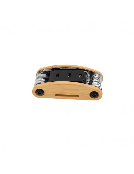 Multiutensile in resistente acciaio inox con custodia in bambù, personalizzato. Con 15 funzioni: