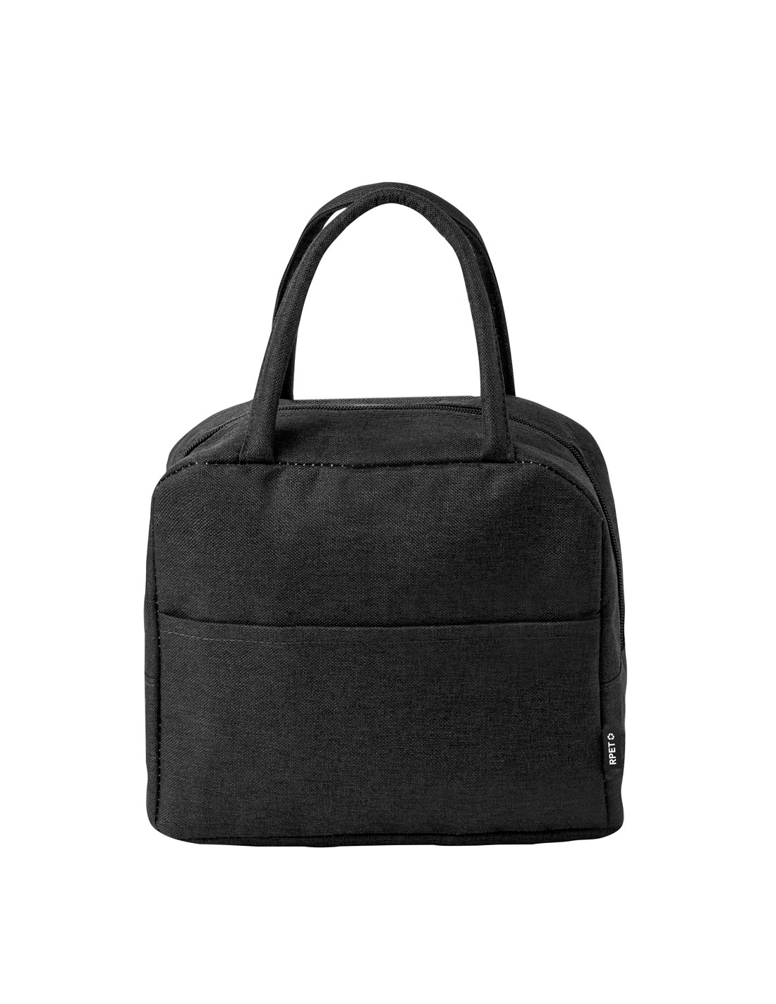 Borsa termica personalizzata realizzata in resistente poliestere 600D RPET. Scomparto principale con chiusura a zip e interno in alluminio con base rinforzata. Con una tasca esterna e manici coordinati, con logo RPET sull'esterno.