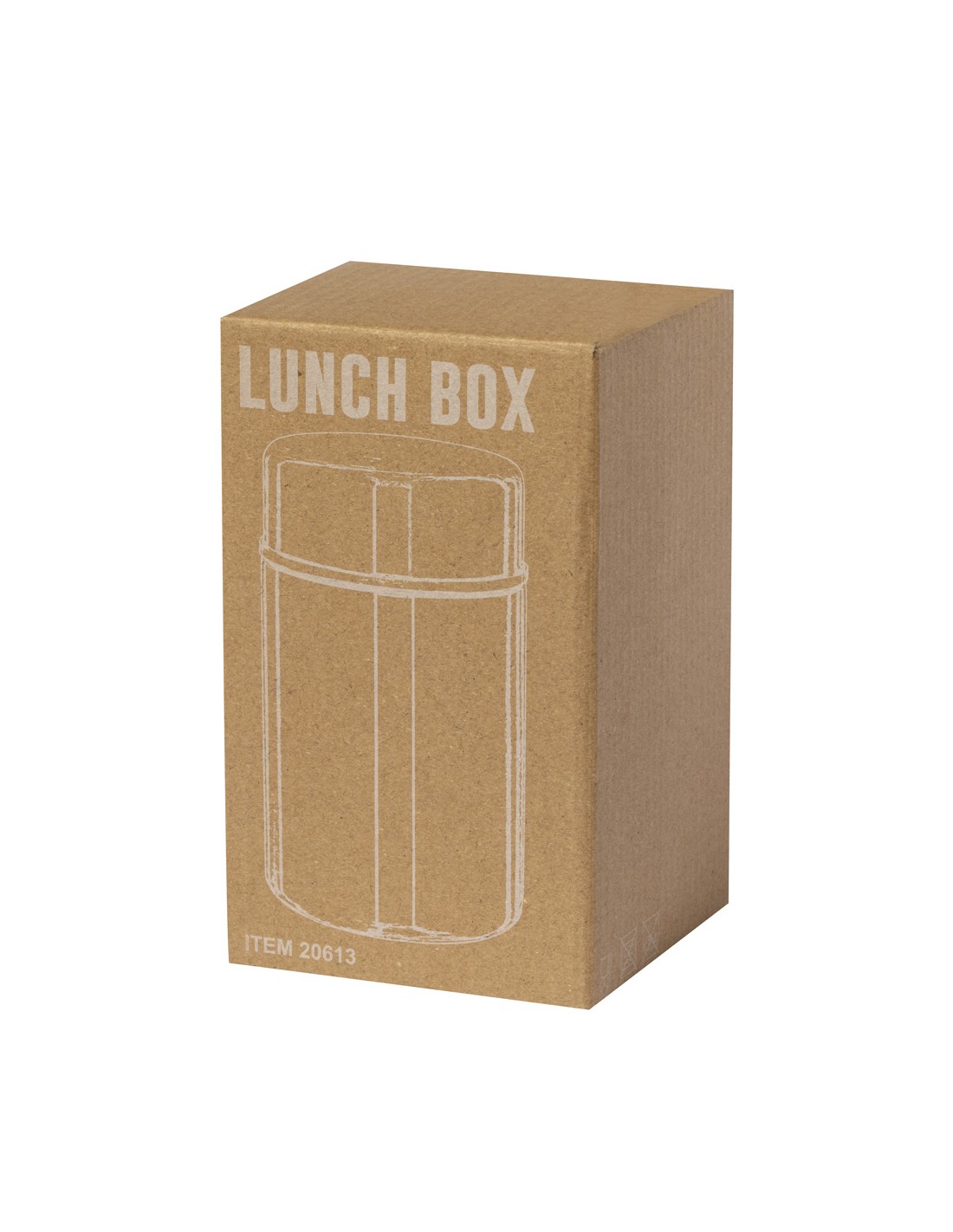 Porta pranzo in acciaio inox a doppia parete con capacità di 600 ml personalizzato. Chiusura di sicurezza con coperchio a vite in acciaio inox. Disponibile in argento e nero e presentato singolarmente in una scatola dal design accattivante.