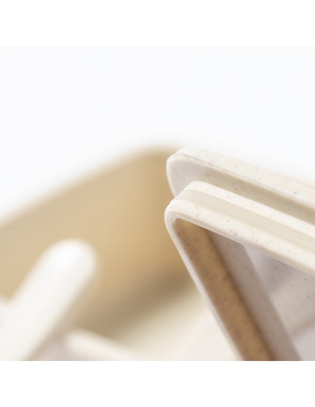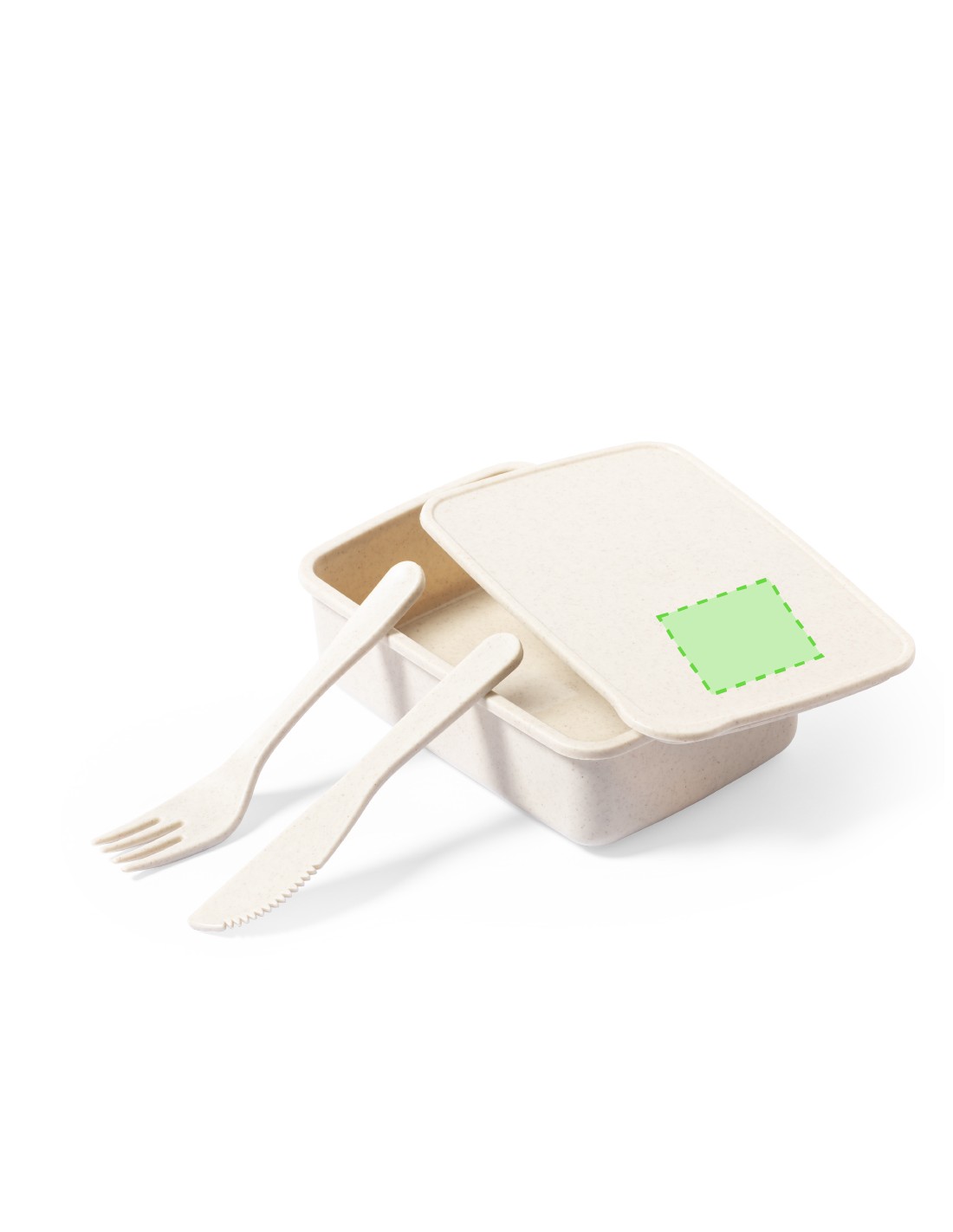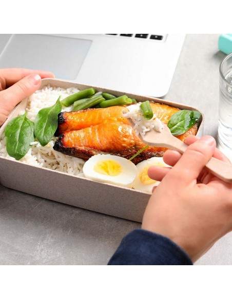 Porta pranzo in PP venato senza BPA personalizzato con capacità 700ml. Include una cinghia elastica per la sicurezza con forchetta e coltello.