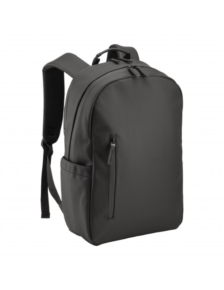 Zaino porta PC (15") Demi in soft PU, water resistant personalizzato. Ha una tasca interna imbottita per PC, un ampio scomparto principale e due tasche esterne portabottiglie. Lo schienale e gli spallacci sono imbottiti con materiale traspirante.